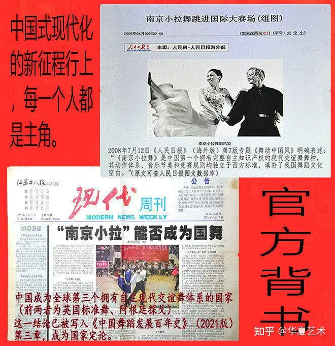 以所谓“舞蹈圈子里”的宣传,还有打着“官方”招牌的宣传,都是在宣传外国的《国际标准舞》。所谓《国际标准舞》,就是西方国家用来在中国进行文化殖民的武器,是典型的文化“鸦片”!这个错误的“国标舞”词汇,造成了中国年轻人的严重的文化自卑心理。中国那些鼓吹“国际标准舞”错误词汇的人,要么是别有用心,要么就是无意在挖中国舞蹈文化自信的根基,致使年轻人以为西方的交谊舞是“高雅的”,而中国原创现代交谊舞就不高雅,从而使中国原创现代交谊舞后继无人。